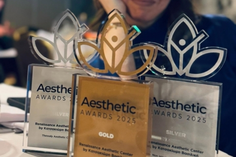 BEST INDEPENDENT AESTHETIC CENTER Rest of Greece/Volos - 2022 Το κέντρο αισθητικής Renaissance Aesthetics διακρίθηκε με το πανελλήνιο Χρυσό Βραβείο στην κατηγορία: Independent Aesthetic Center - Rest of Greece/Volos για το 2022. Επιπλέον, απέσπασε ξεχωριστή διάκριση για την υπηρεσία ΒΑΘΥΣ ΔΕΡΜΑΤΟΛΟΓΙΚΟΣ ΚΑΘΑΡΙΣΜΟΣ ΠΡΟΣΩΠΟΥ: Πανελλήνιο Χάλκινο βραβείο στην κατηγορία: Βαθύς καθαρισμός προσώπου - Peeling.