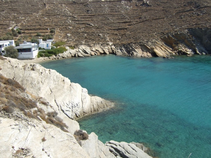 In the bay of Hora you will find the small and quiet beach of Valmas. You can go there by car or via a beautiful hiking route that starts from the church of Agia Irini in the harbor.